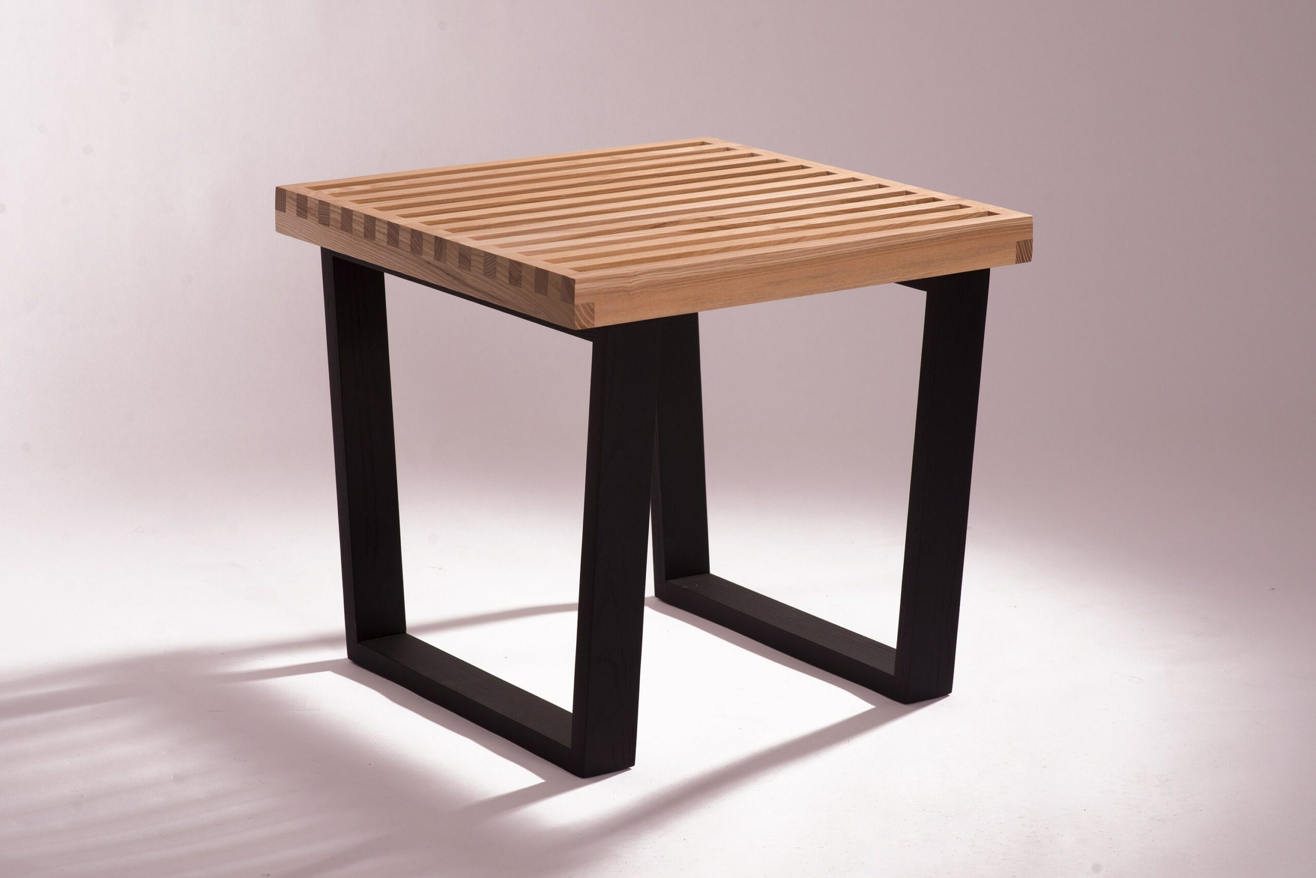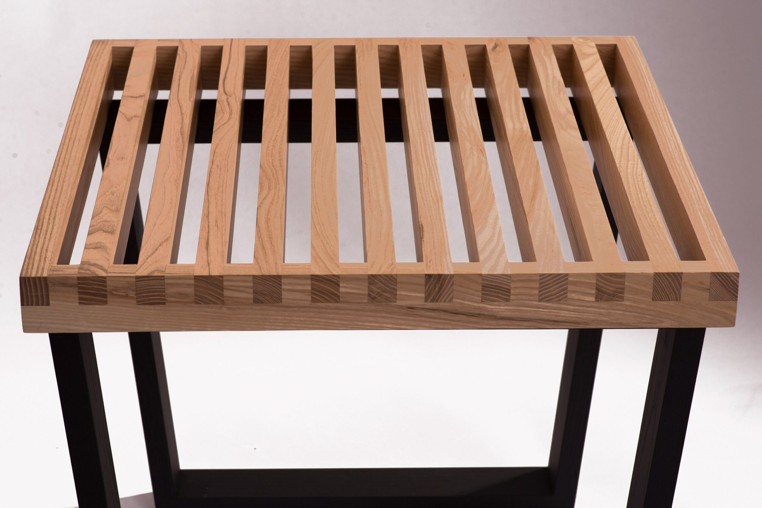 Handgefertigter Duschhocker aus Eiche – schwarz lackierte Beine, wasserfest mit Epifanes-Yachtlack